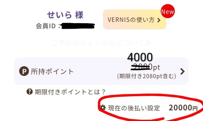 ヴェルニでは初回限定特典として、4000円分の無料ポイントがもらえます。
